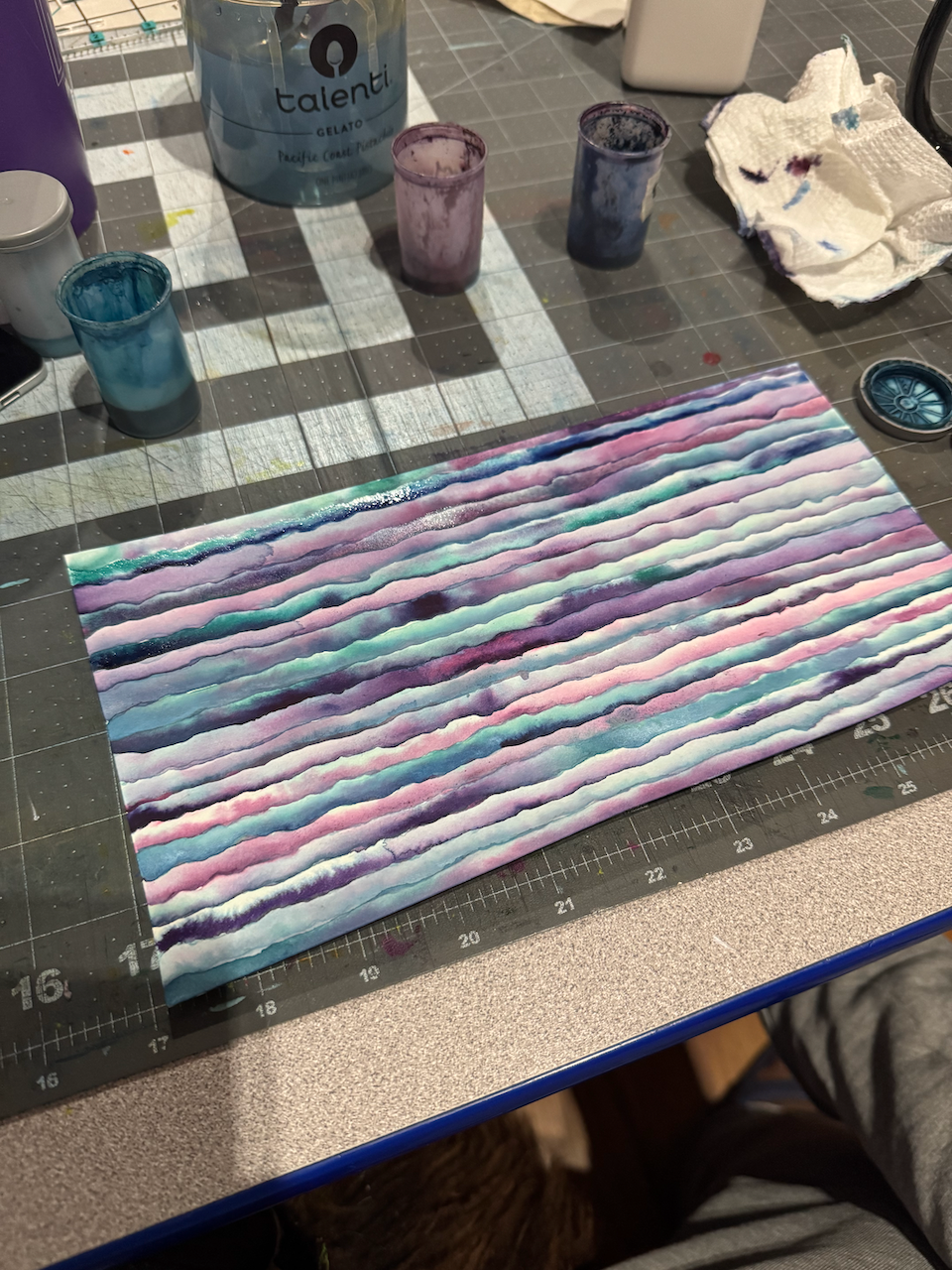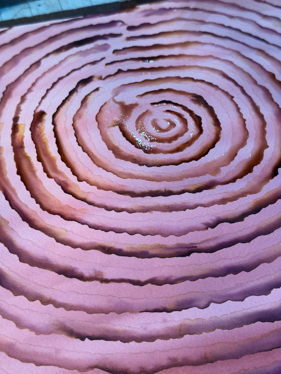 I knew I wanted to say something about how small actions make an impact and the image of a flower falling onto a calm body of water, creating ripples upon a gentle landing immediately sprang into my mind. With that, I got to work on a new painting of ripples of water making rings.